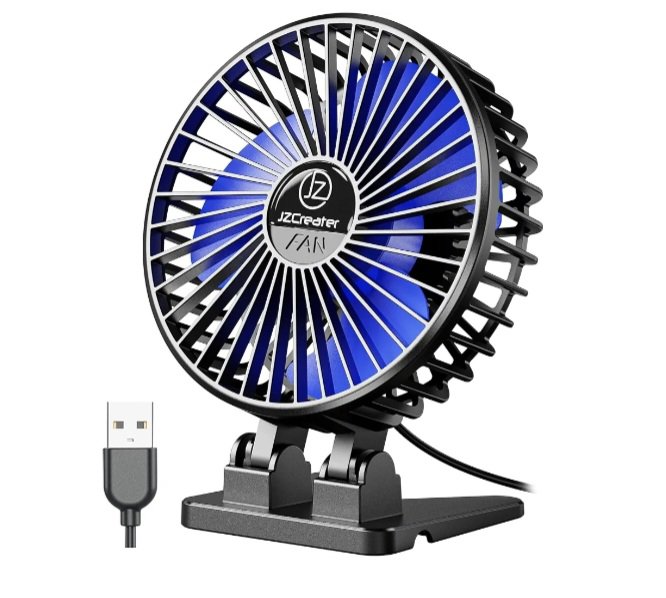 JZCreater USB Desk Fan, Portable Fan Mini. 3 Speeds Desktop Table Cooling. Plug in Power. Rotation Strong Wind. Quiet. Personal. Small Fan. For Home, Desktop Office, Travel Bedroom. Selection variety.